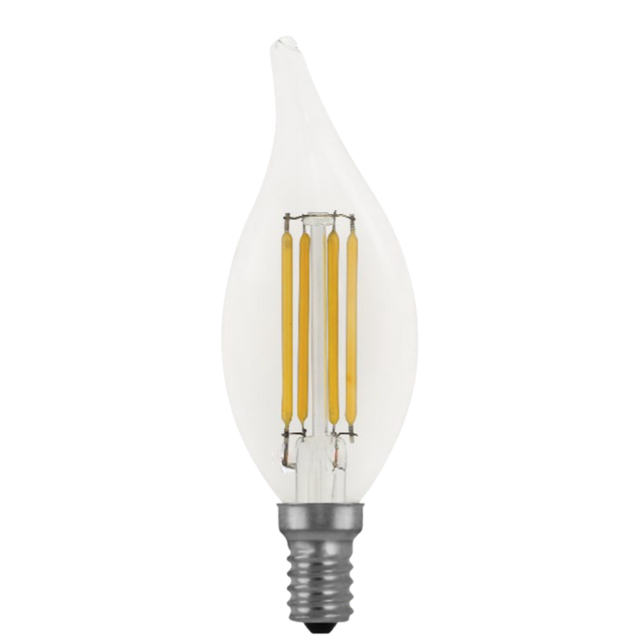 LED 4.5w Flame Tip Style Cadleabra E12 Base Clear Filament Style 500lm (2700K) 120v (4 Bulbs)