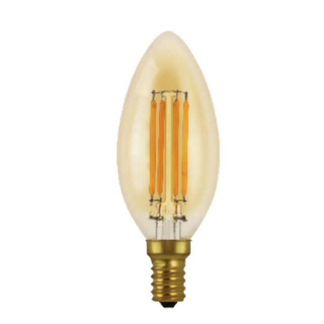 LED 4.5w Torpedo Style Cadleabra E12 Base Amber Filament Style 350lm (2200K) 120v (4 Bulbs) - 2200K is backordered and will ship as soon as it is back in stock.