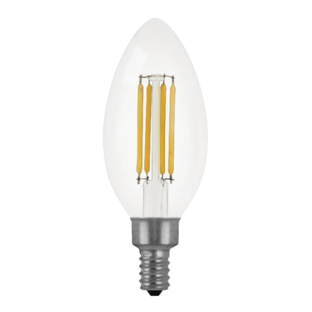 LED 5.5w Torpedo Style Cadleabra E12 Base Clear Filament Style - CEC Certified 500lm (2700K/3000K/5000K) 120v (4 Bulbs) - 2700K is backordered and will ship as soon as it is back in stock.
